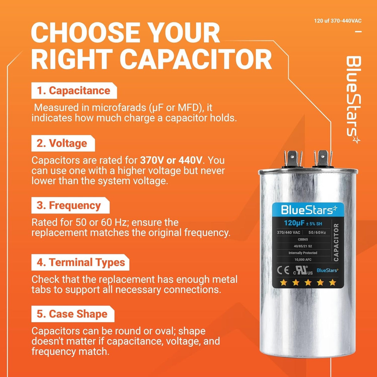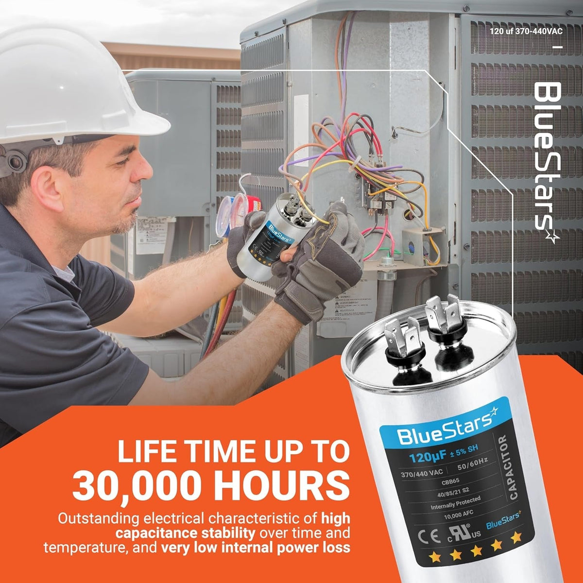 The 120 µF round run capacitor is engineered for optimal performance in 370-440VAC applications, making it a vital component for a wide range of AC electric systems.