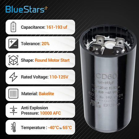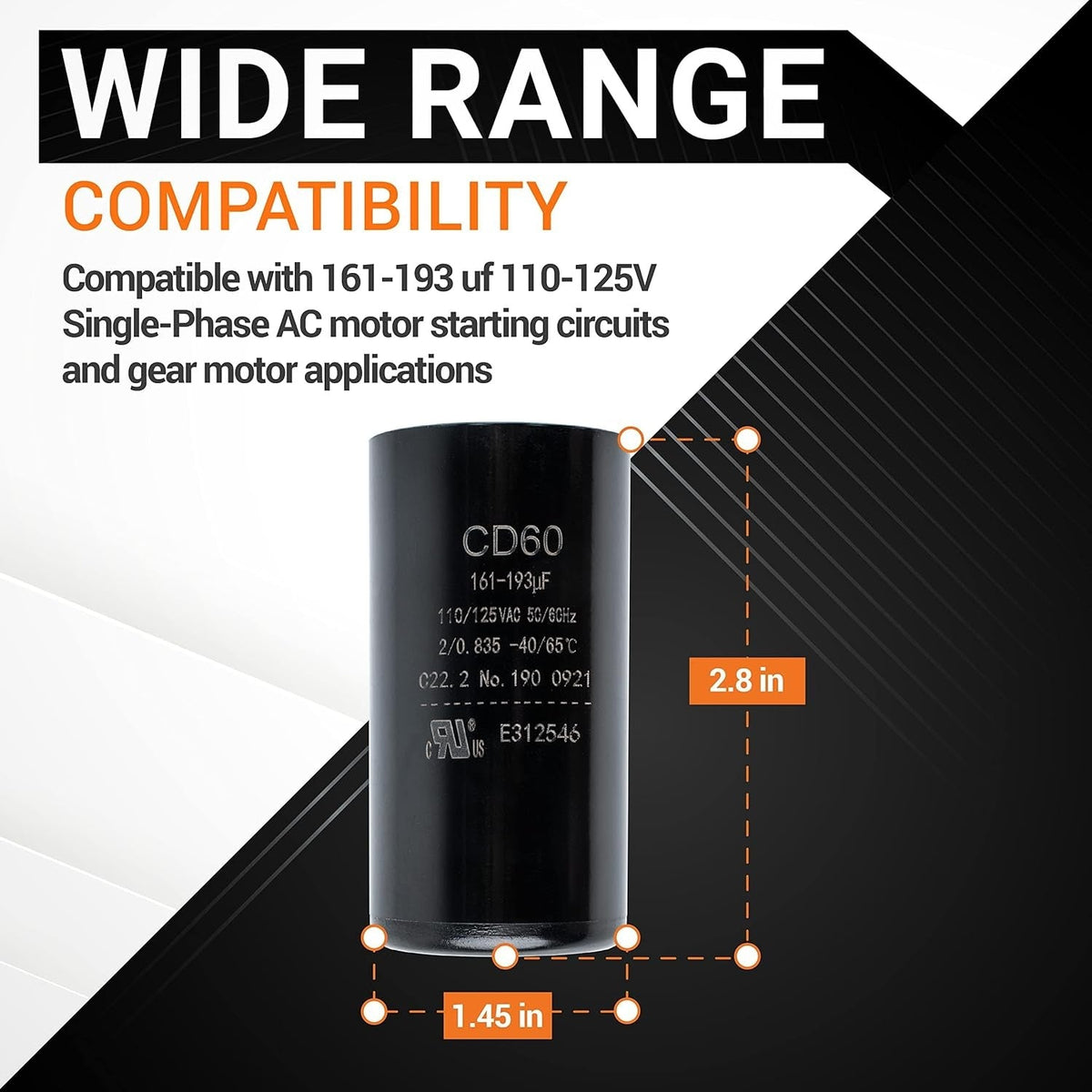 161-193 uf/MFD 125 VAC CD60 Round Motor Well Pump Start Capacitor