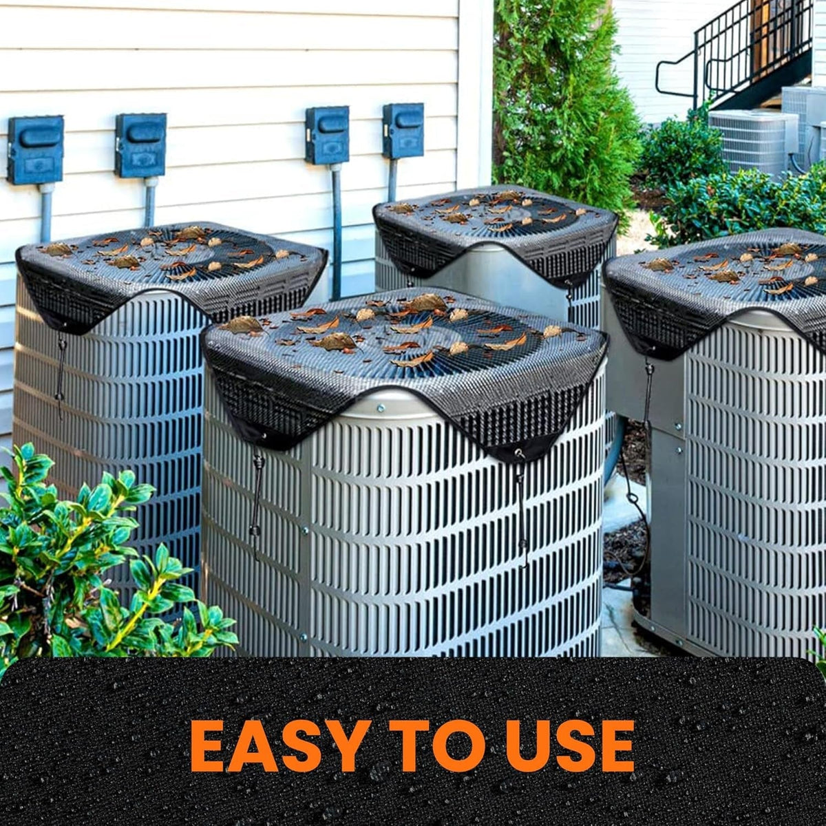Clean your condenser unit, place the cover over it for a precise fit, and secure it with the included bungee cords or hooks. Fasten tightly on each side to ensure the cover is firmly in place, offering robust protection against dust, debris, and weather.