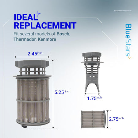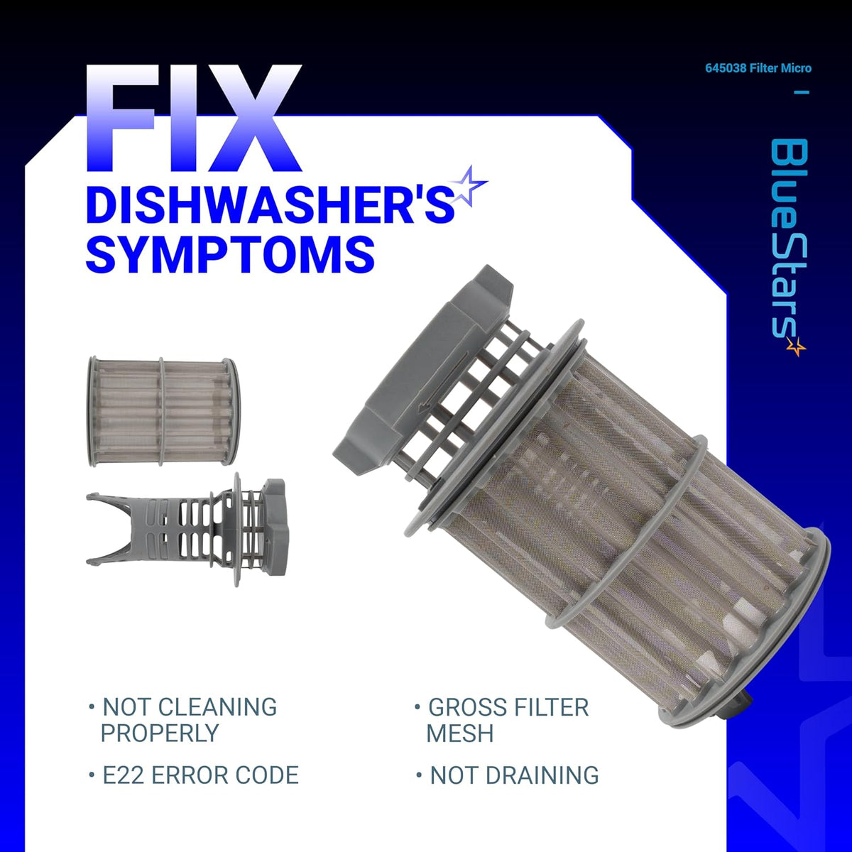 Upgrade your dishwasher's performance with the high-quality 645038 Dishwasher Drain Mesh Micro Filter. Designed specifically for Bosch, Thermador, and Kenmore dishwashers, this fine-mesh filter is essential for maintaining optimal washing and draining cycles.