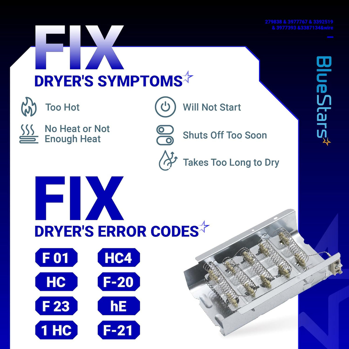 - High-quality heating element designed to restore proper drying function