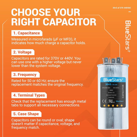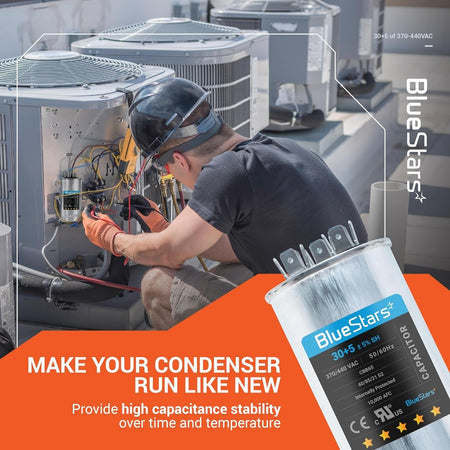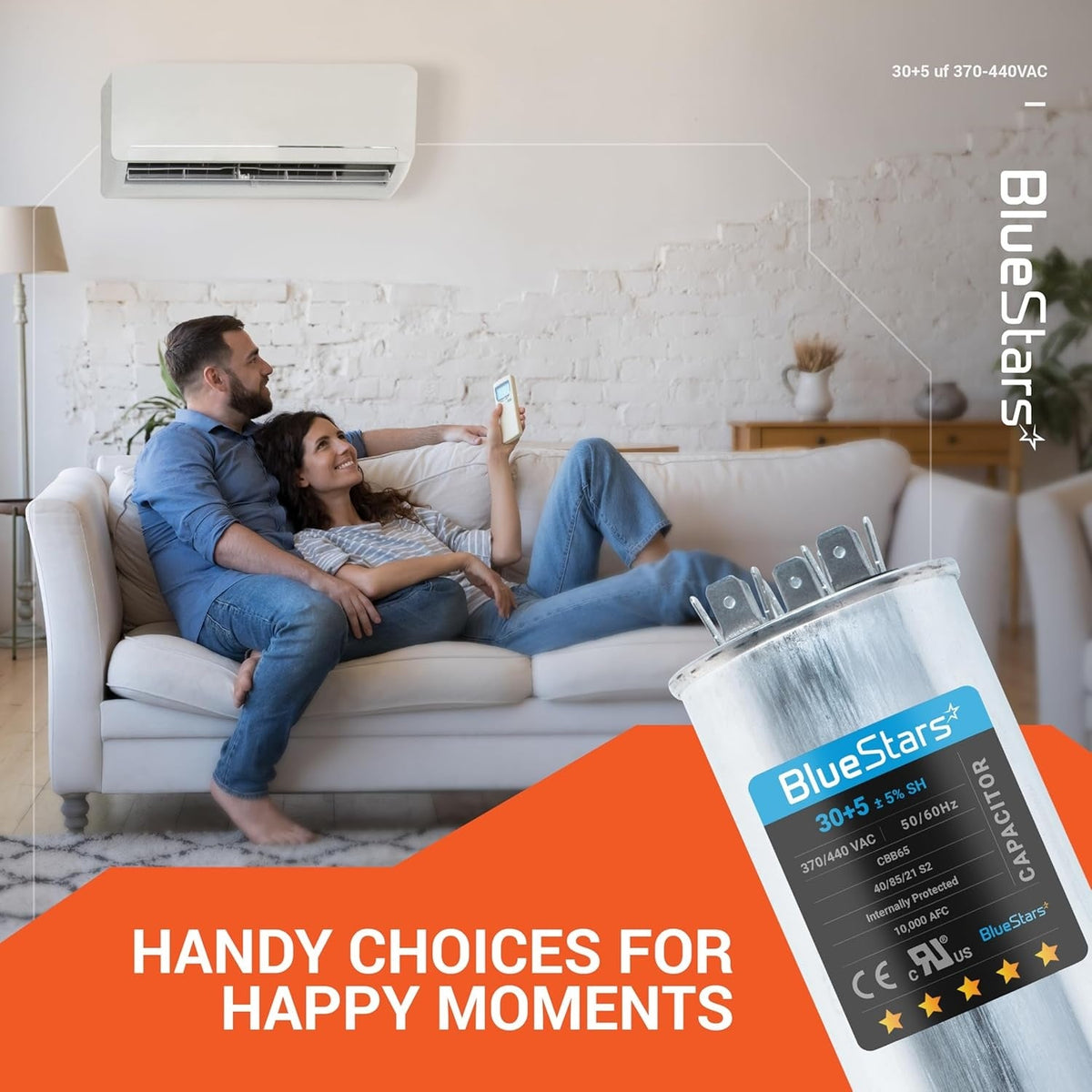30+5 uf/MFD 370-440 VAC Volts Round Dual Run Capacitor