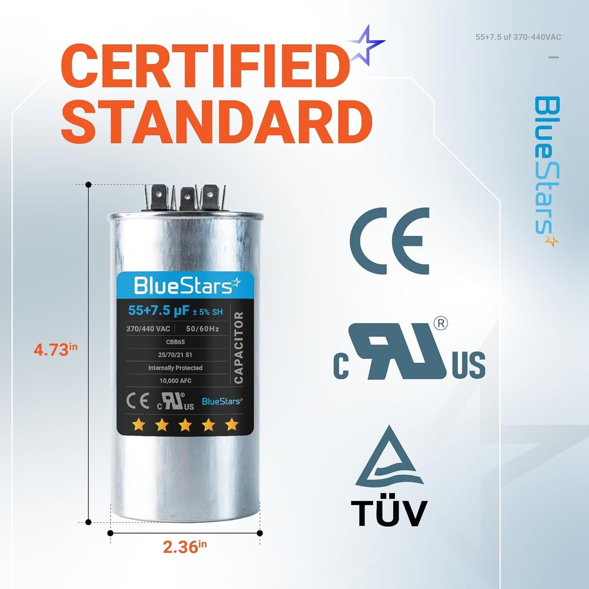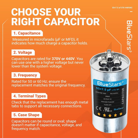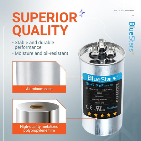 - Capacitance: 55+7.5 microfarads (µF)
