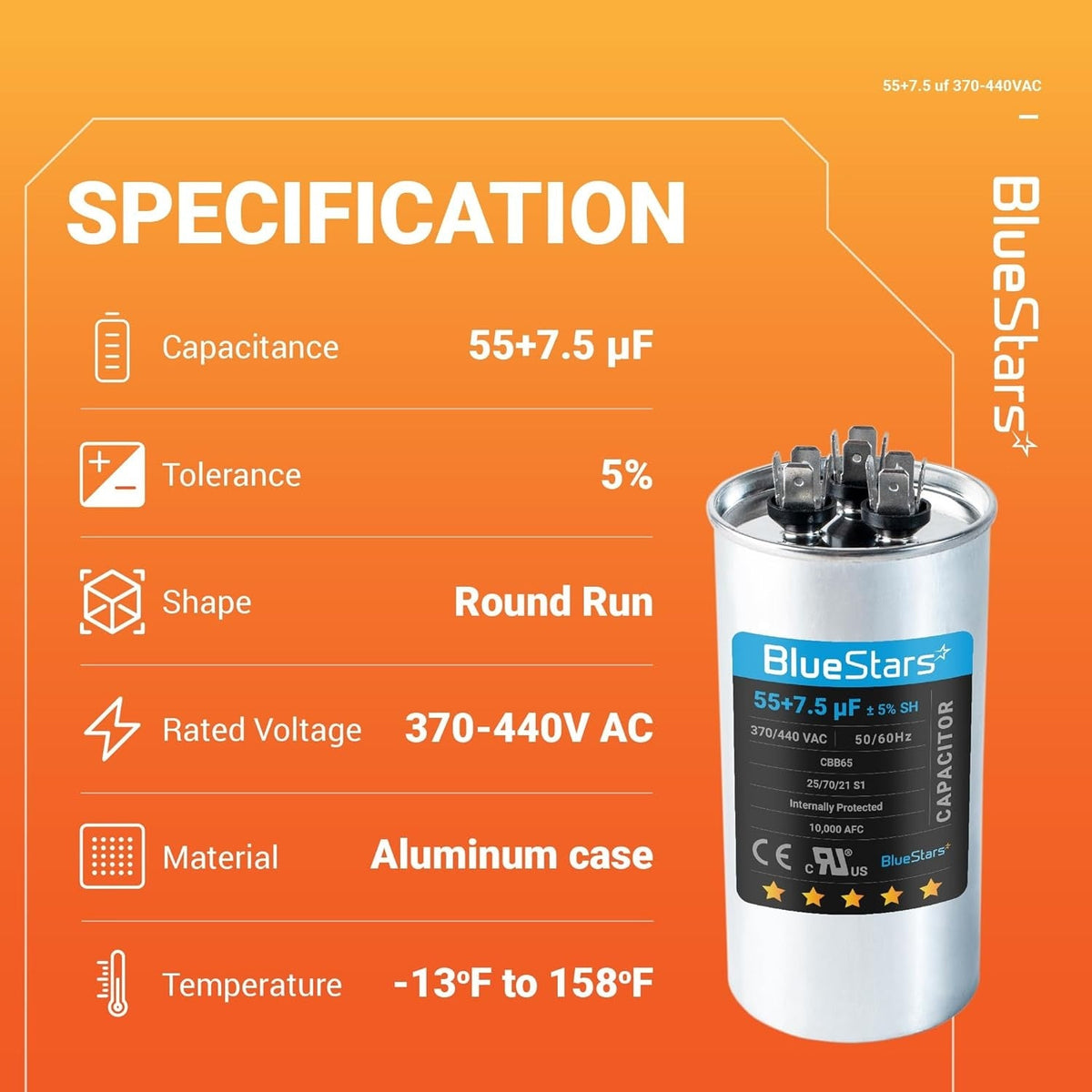 - Compatibility: Direct replacement for part numbers C35575R and TT-CAP-55/7.5/440