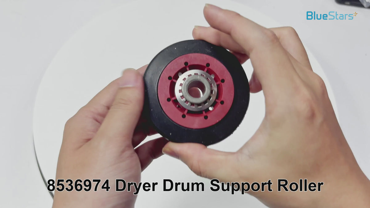 The 8536974 Dryer Drum Support Roller is designed to fit Whirlpool, Kenmore, and Maytag dryers. This essential component ensures a perfect fit and smooth performance, enhancing your appliance's efficiency.