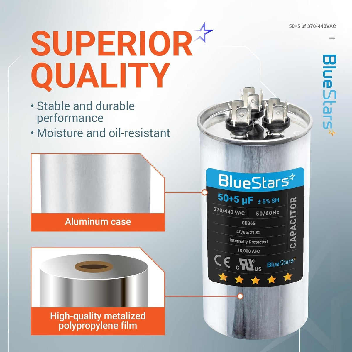 50+5 MFD uf 370 or 440 Volt VAC Dual Run Circular Start Capacitor Replacement Part