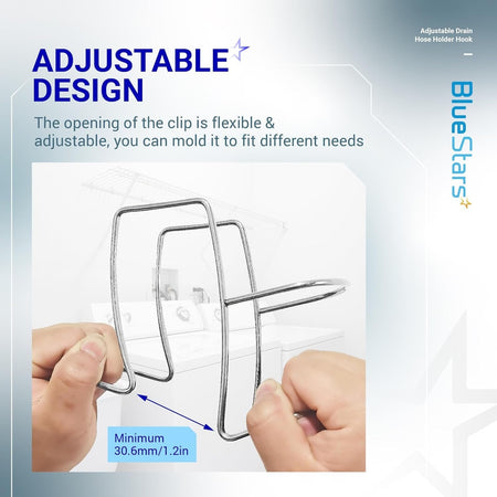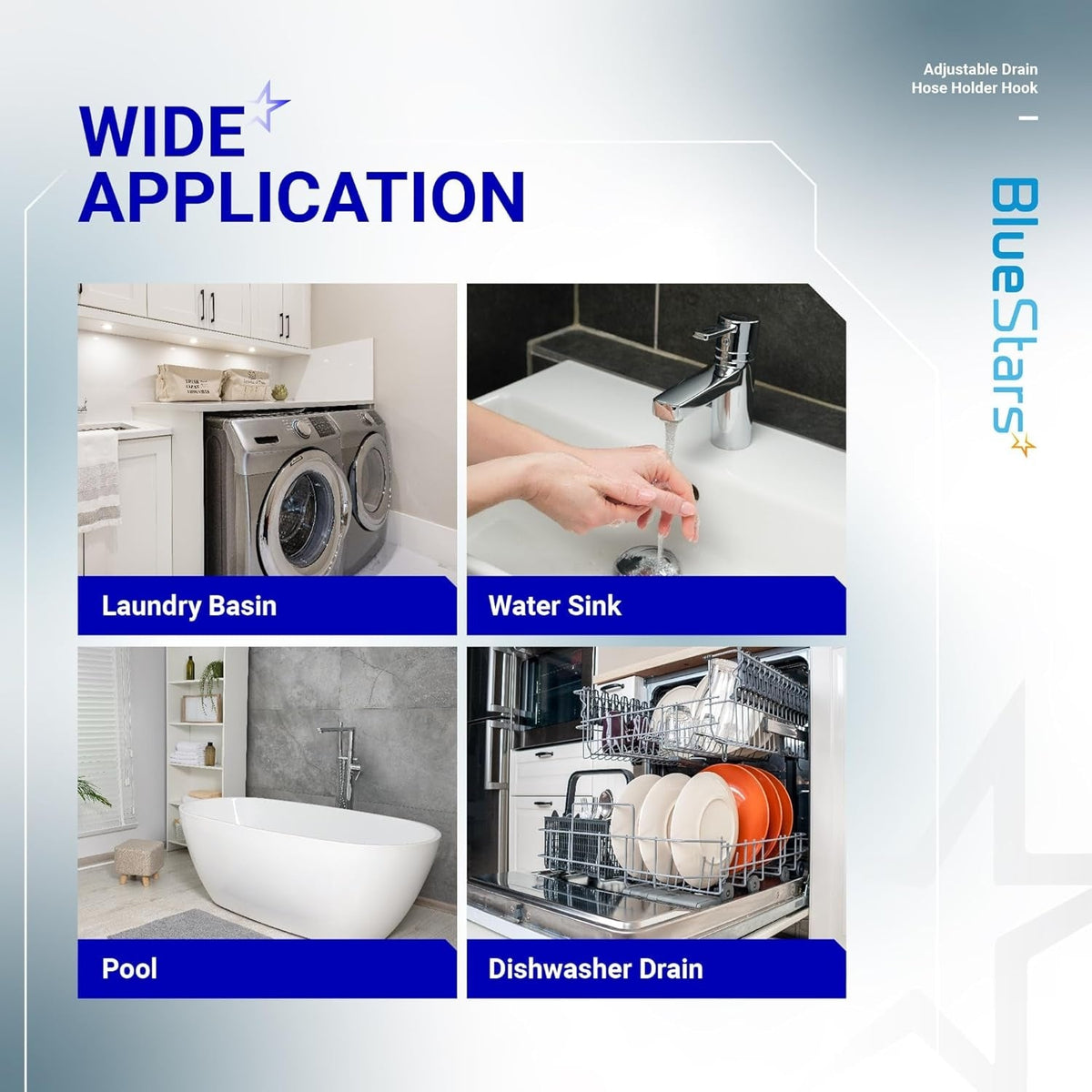 The Adjustable Drain Hose Holder is a versatile and durable solution designed to securely hold drain hoses for washing machines, dishwashers, and laundry tubs.