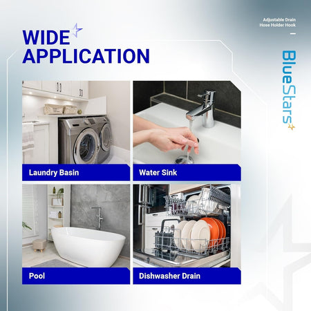 Upgrade your laundry setup with the Adjustable Drain Hose Holder, the perfect blend of style and practicality for all your drainage needs.