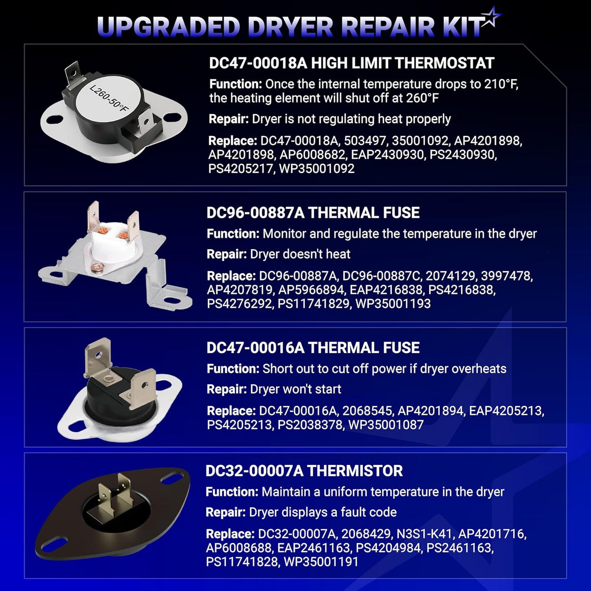 • 1 x DC47-00018A Dryer Thermostat