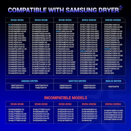 This kit is compatible with various Samsung dryer models, including: