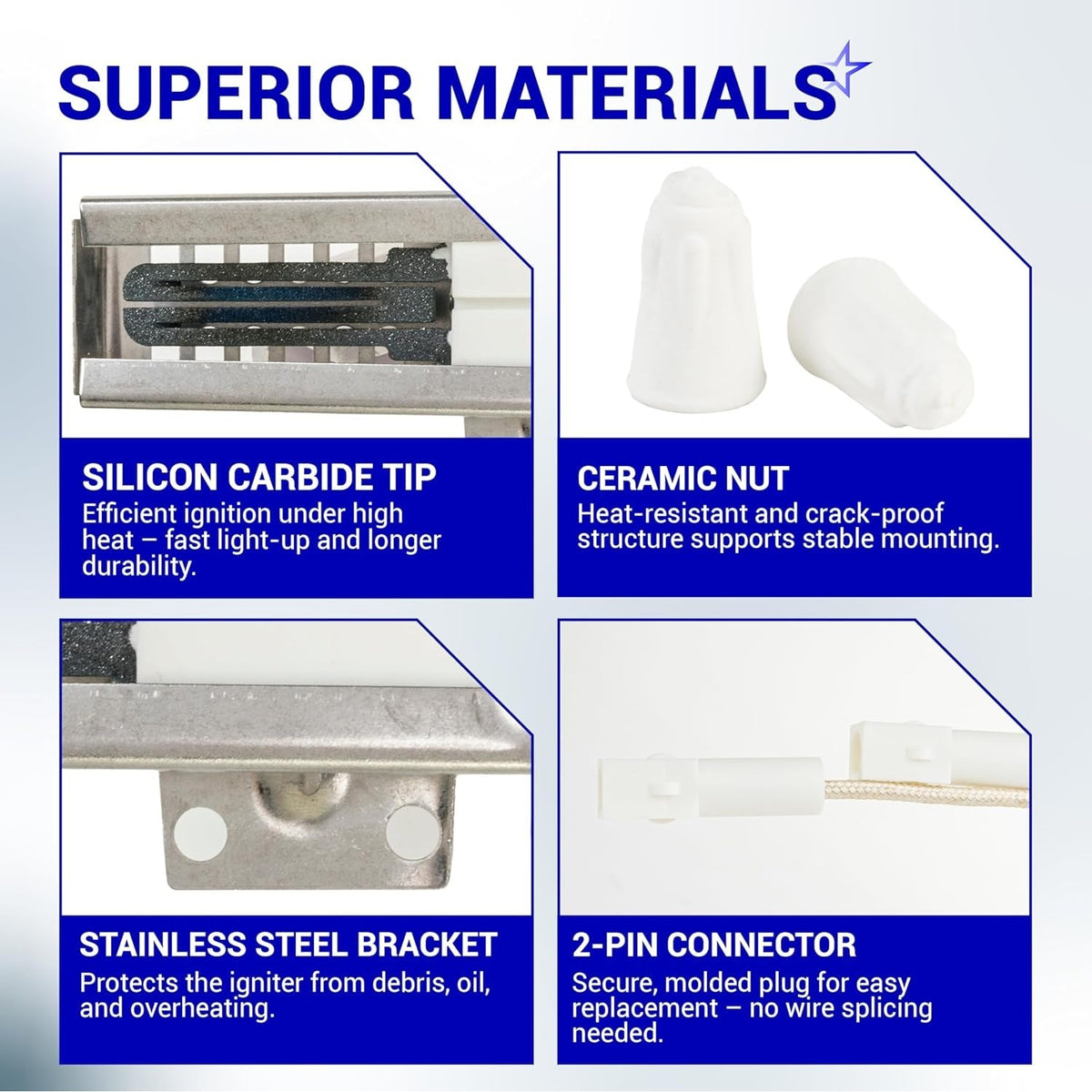 - Each igniter includes a wire connector plug and two ceramic nuts.