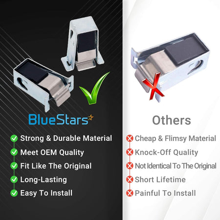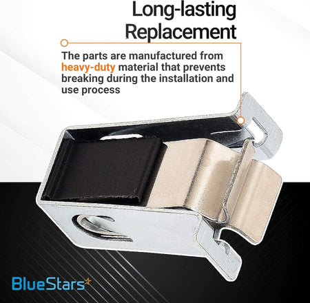 The W10111905 dryer door catch ensures your dryer door remains firmly shut during operation, preventing accidental opening and ensuring safe and efficient drying cycles. This pack provides spares, allowing for quick repairs and minimizing downtime, especially useful for repair professionals or those with multiple dryers.