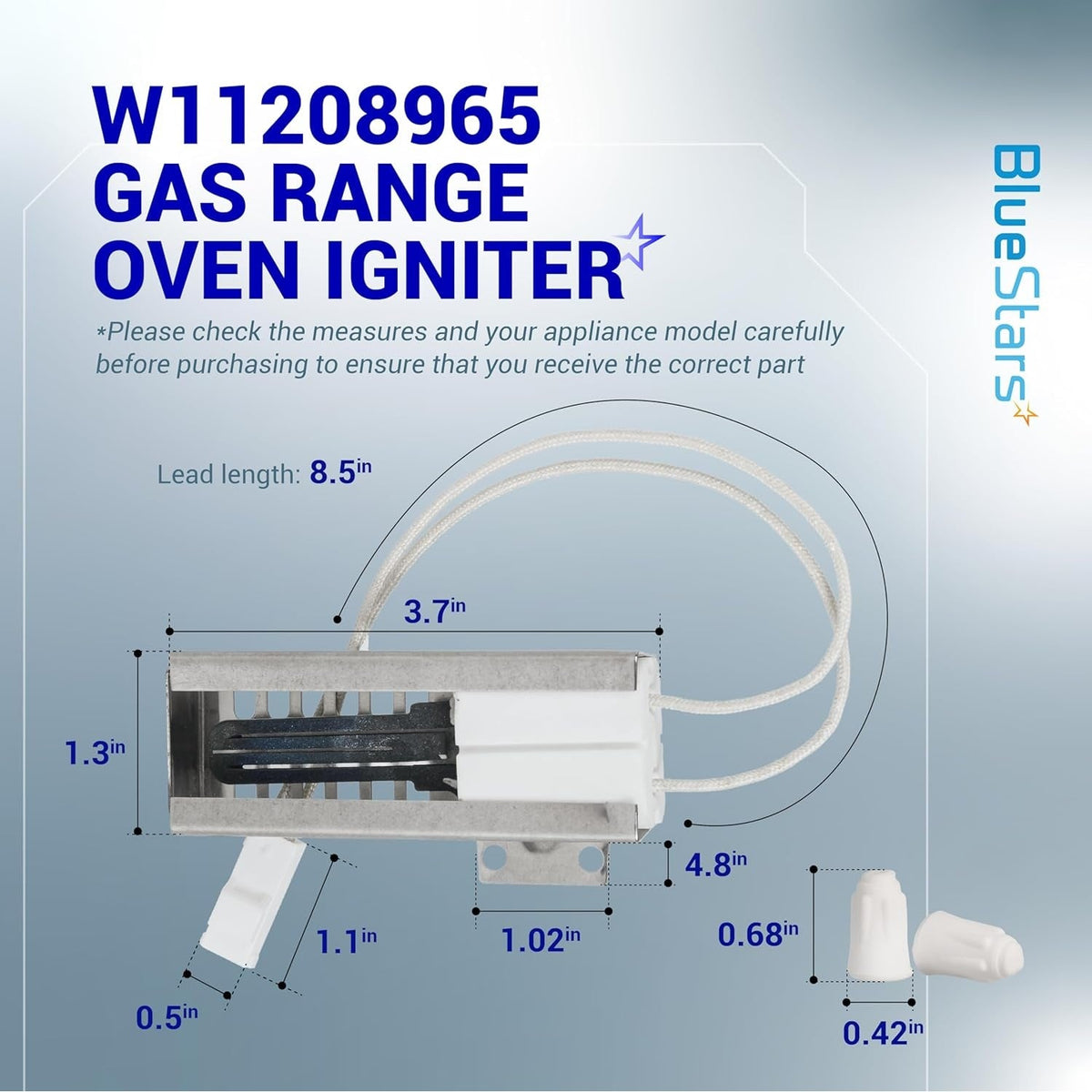 Upgrade your cooking experience with the BlueStars W11208965 Gas Range Oven Igniter. This high-performance igniter is designed to provide reliable flame ignition and enhance the efficiency of your gas range oven.