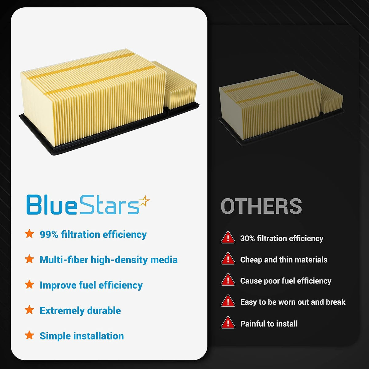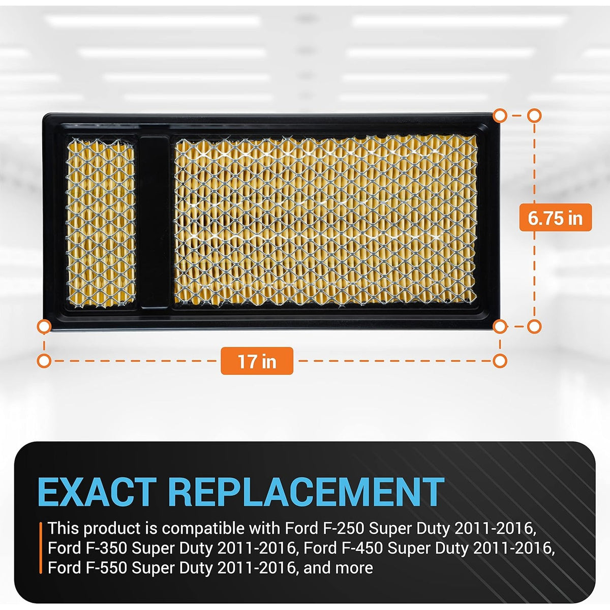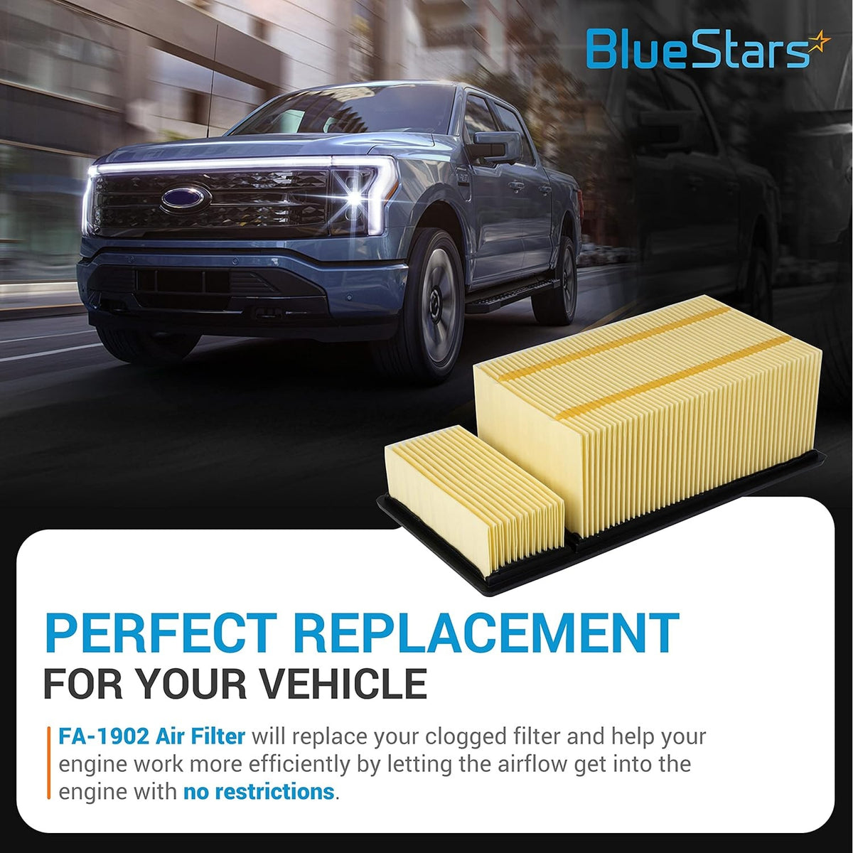 The BlueStars FA-1902 high-capacity engine air filter is designed to deliver clean, unrestricted airflow for Ford Super Duty trucks equipped with the 6.7L Powerstroke diesel engine. With premium filtration performance, it helps protect your engine while improving efficiency and power.