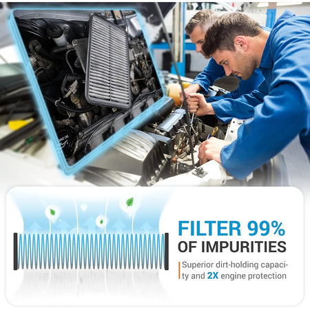 With a superior dirt-holding capacity and up to 99% filtration efficiency, this air filter effectively traps dirt, dust, and debris before they enter the engine. Clean airflow helps prevent engine misfires, supports smoother starts, and provides up to 2× engine protection compared to heavily used filters.
