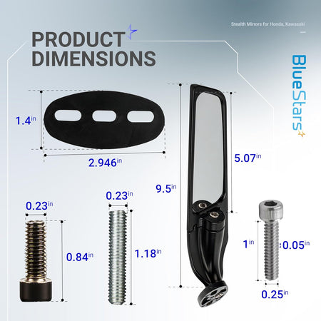 • Features a fixed component mounted directly to the fairing and a movable mirror glass holder.