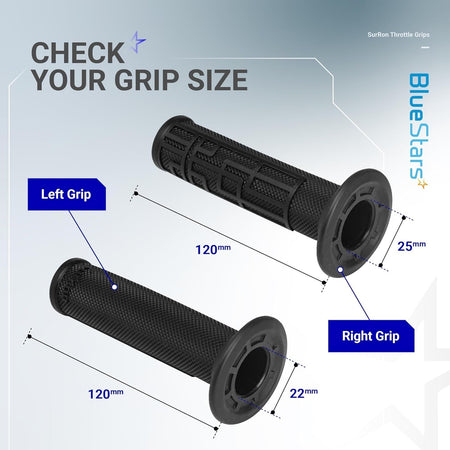 • The right-side grip has a larger internal diameter to accommodate the throttle tube.