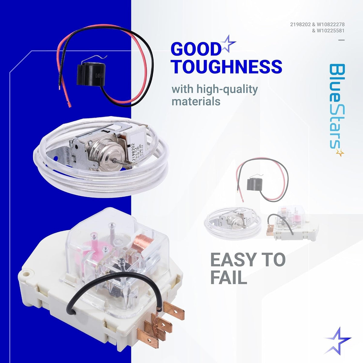 This listing offers a complete refrigerator defrost kit, designed to replace worn-out defrost components in Whirlpool and Kenmore refrigerators. This kit includes three crucial parts: