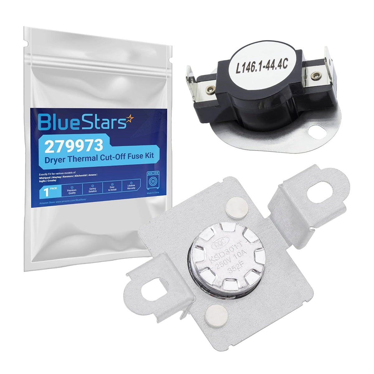 Ensure the safety and functionality of your Whirlpool and Kenmore dryers with the 279973 Dryer Thermal Cut-Off Fuse Kit. This essential component is designed to prevent overheating and potential fire hazards by automatically cutting power to the dryer when temperatures exceed safe operating levels.