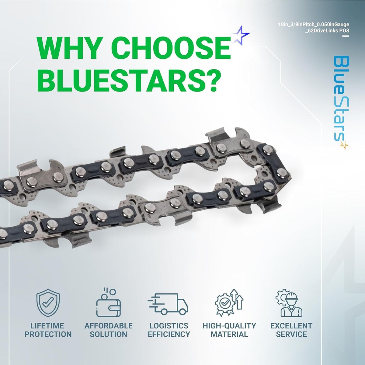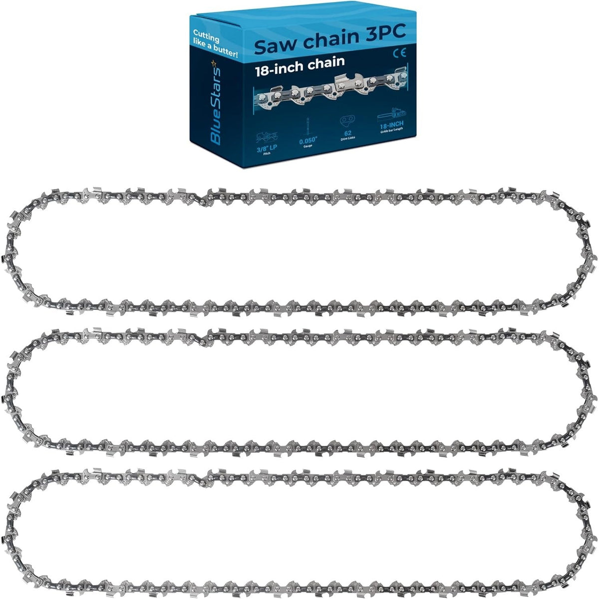 18-inch 18-inch Chainsaw Chain 3/8" LP Pitch, 0.050" Gauge, 62 Drive Links - Pack of 3