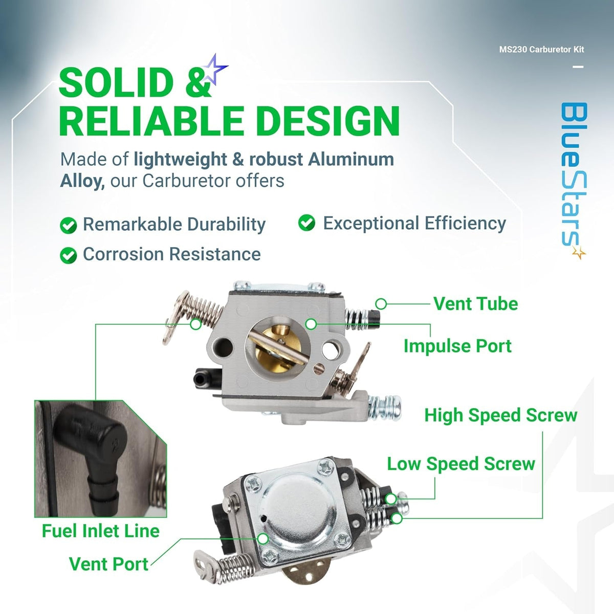 - Direct replacement for original equipment manufacturer (OEM) carburetors.