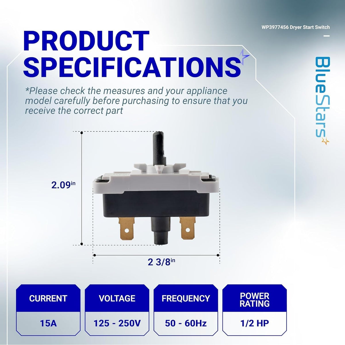 3977456 WP3977456 Dryer Start Switch - Replaces AP6009036, PS11742178, EAP11742178, 898073