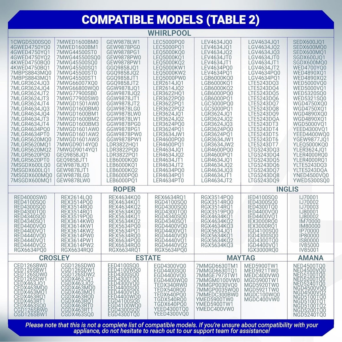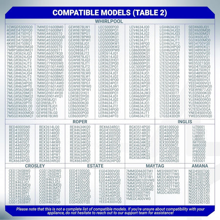 • Fits models from brands including Whirlpool, Maytag, Amana, KitchenAid, and Roper