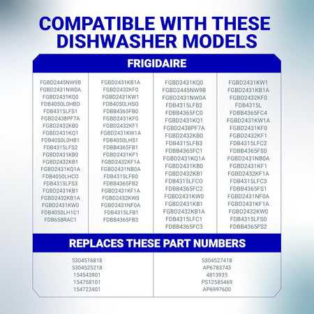 Replace your Frigidaire 5304516818 dishwasher door latch kit with the TOVEN-RV upgrade. This kit addresses common dishwasher issues such as: