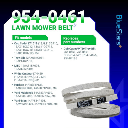 - Cub Cadet/MTD/Troy Bilt: 954-0461, 754-0461, OCC-754-0461, 754-04165, 954-04165