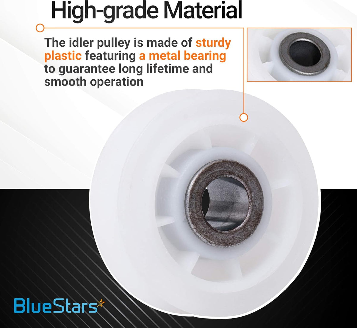 This high-quality replacement idler pulley is designed for use in various Whirlpool and Kenmore dryer models. It is a direct replacement for several common part numbers, ensuring a seamless and easy installation.