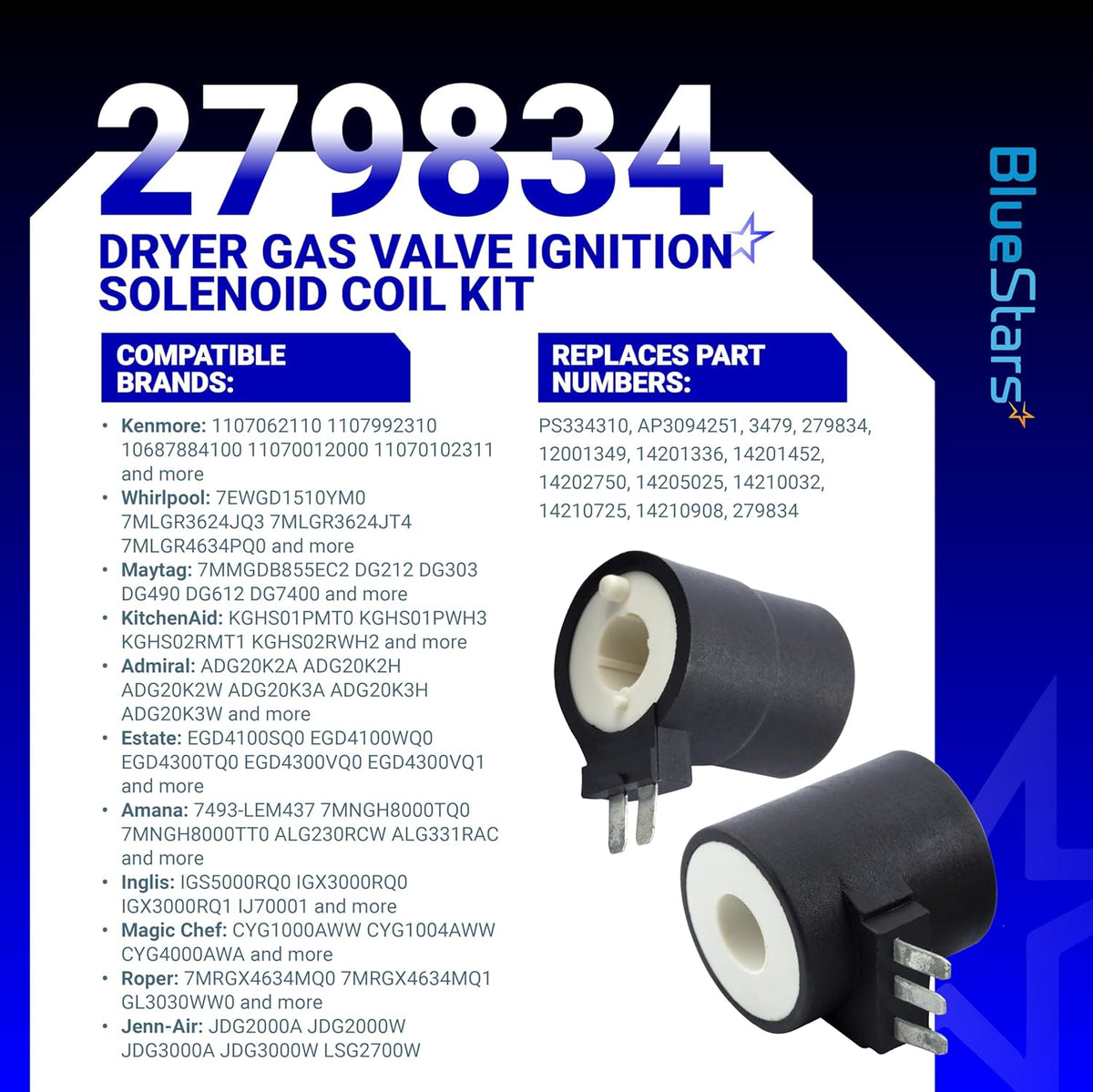 Ensure your dryer operates efficiently with the 279834 Dryer Gas Valve Ignition Solenoid Coil Kit, a reliable choice for maintaining your appliance's performance.