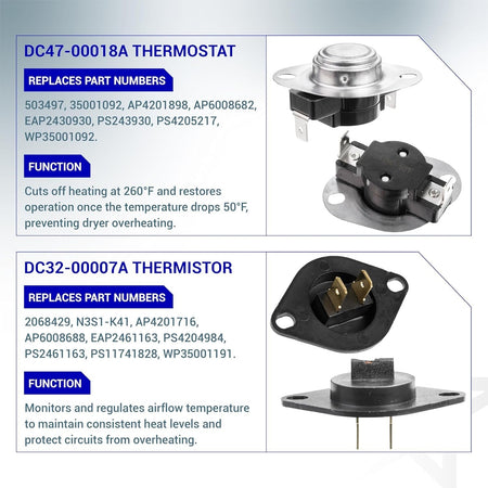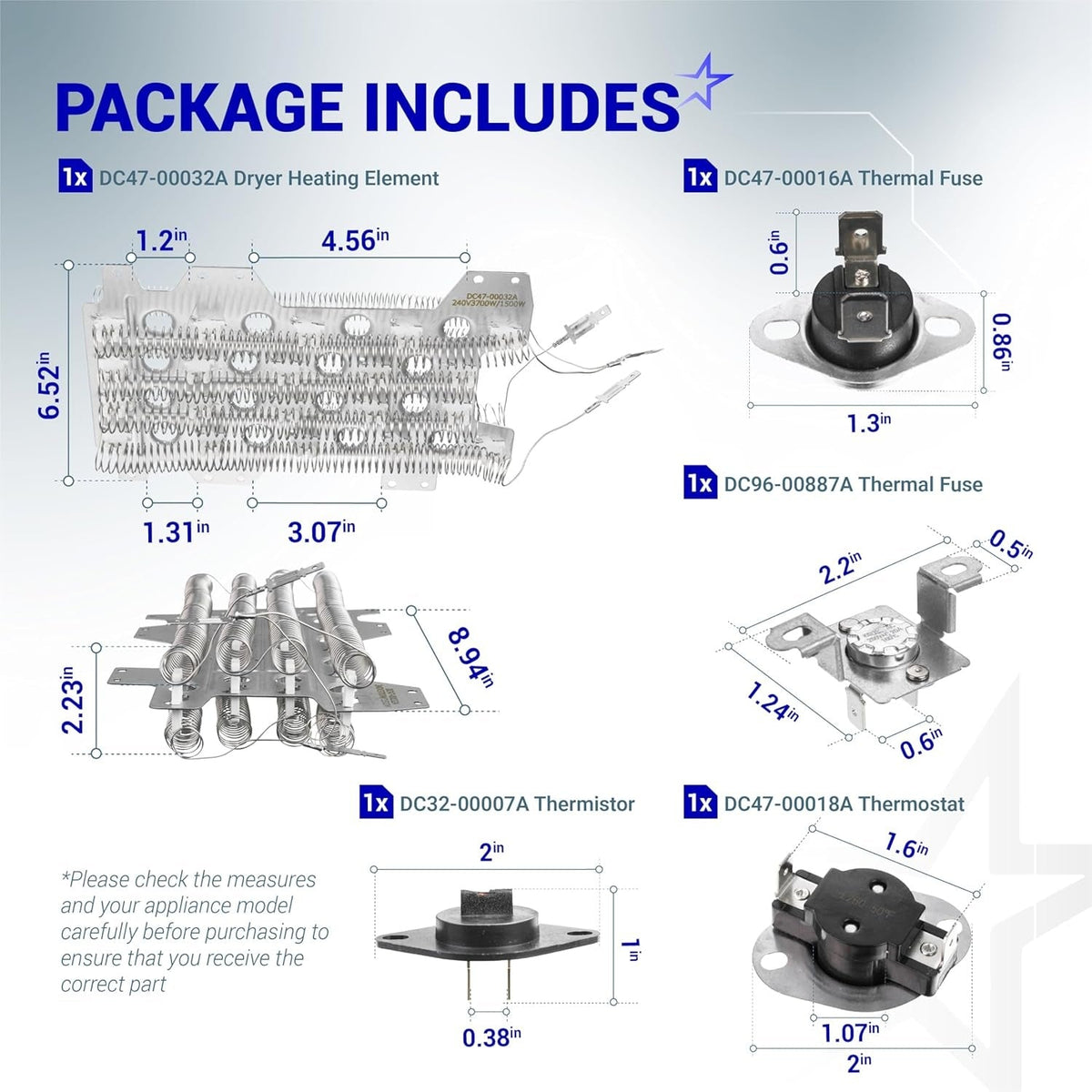 DC47-00032A Dryer Heating Element Kit Replacement for Samsung Dryers (3-Wire) - Includes DC47-00018A Thermostat DC96-00887A Thermal Fuse DC47-00016A Thermal Fuse DC32-00007A Thermistor