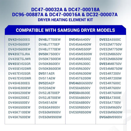 The DC47-00032A Dryer Heating Element Kit fits the following Samsung Dryer models: