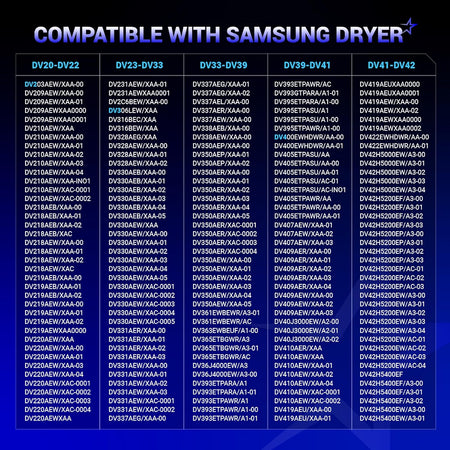 DV331AER/XAA-03,DV337AEG/XAA-00,DV337AEL/XAA-00,DV337AER/XAA-00,DV337AEW/XAA-00,DV350AER/XAA-00,DV361EWBEWR/A3-01 DV365ETBGWR/A3-01,DV36J4000EW/A3-00,DV400EWHDWR/AA-00,DV400EWHDWR/AA-01,DV405ETPASU/AA-00,DV405ETPASU/AA-01,DV407AEW/XAA-01,DV407AEW/XAA-02,DV409AER/XAA-00,DV409AER/XAA-01,DV409AER/XAA-02,DV409AEW/XAA-00,DV42H5200EP/A3-00,DV42H5400EF/A3-00,DV42H5600EP/A3-00,DV42H5600GW/A3-00,DV431AEW/XAA-01,DV431AEW/XAA-02,DV433ETGJWR/A1-00,DV456ETHDSU/AA-00,DV456EWHDWR/AA-01