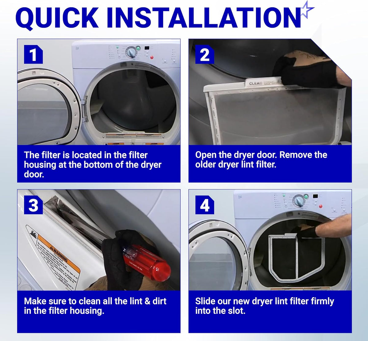 - Improved Safety: By preventing lint buildup, this filter helps reduce the risk of dryer fires, ensuring safe operation of your appliance.