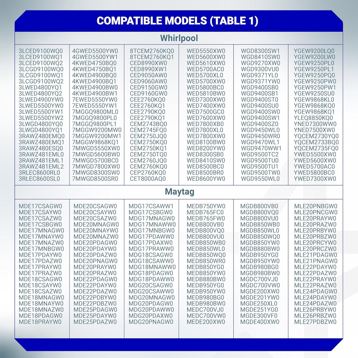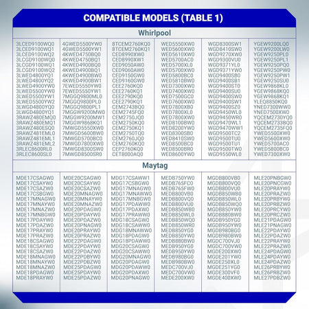 Compatible with Whirlpool, Kenmore, Maytag, & Roper Dryers