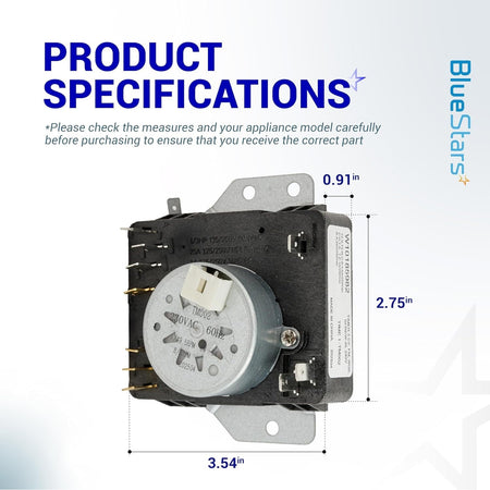 Ensure your dryer operates at peak efficiency with the BlueStars W10185982 Dryer Timer. This essential component allows you to set precise drying times, saving energy and preventing over-drying.