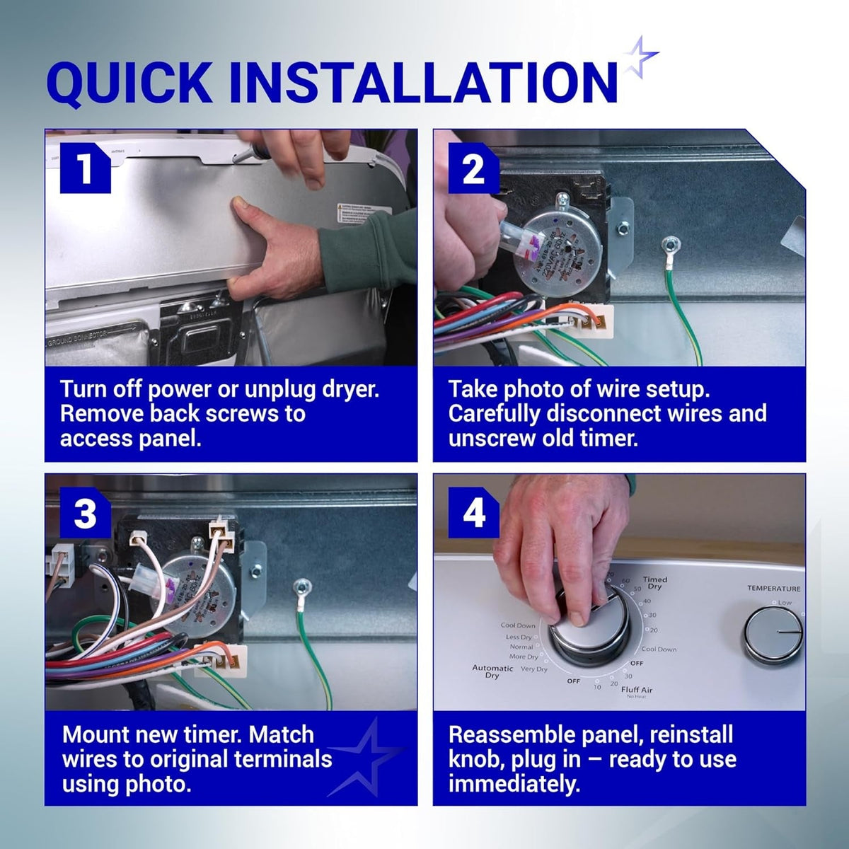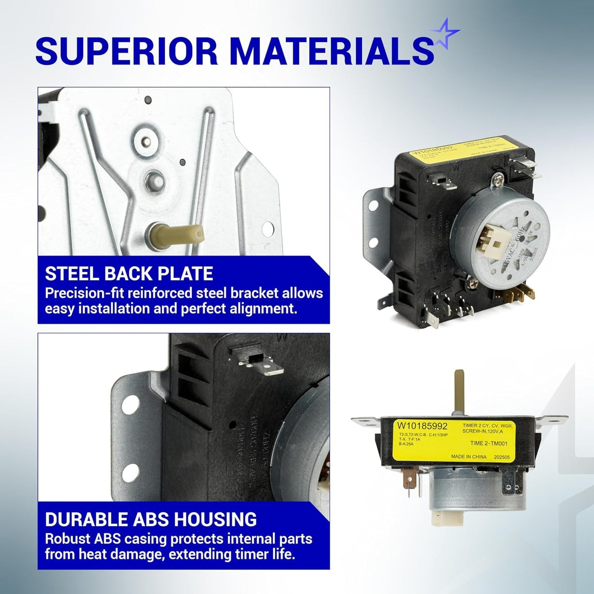 The W10185992 Dryer Timer is an essential component for resolving common dryer issues, ensuring your laundry routine runs smoothly. With precise engineering and superior materials, this timer is designed for durability and reliability.