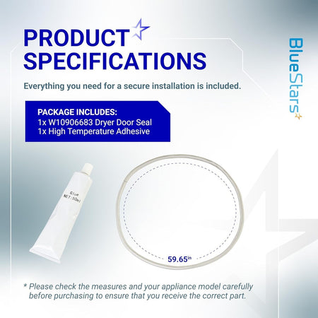 Upgrade your dryer with the W10861521 Dryer Door Seal, designed to enhance drying efficiency and protect your clothes. This package includes: