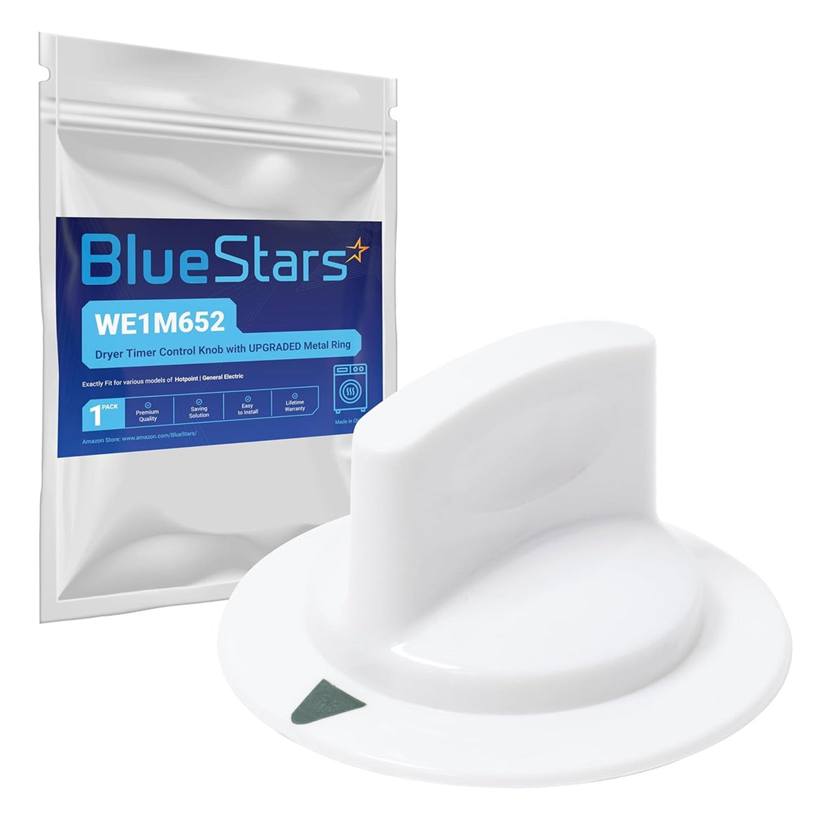 This listing is for a replacement dryer timer control knob, part number WE1M652, featuring an upgraded metal ring for enhanced durability and longevity. This improved design offers superior resistance to wear and tear compared to the original plastic ring, ensuring a more reliable and longer-lasting component. It is a direct replacement for numerous Hotpoint and GE dryer models, restoring smooth and precise control over your drying cycle selection.