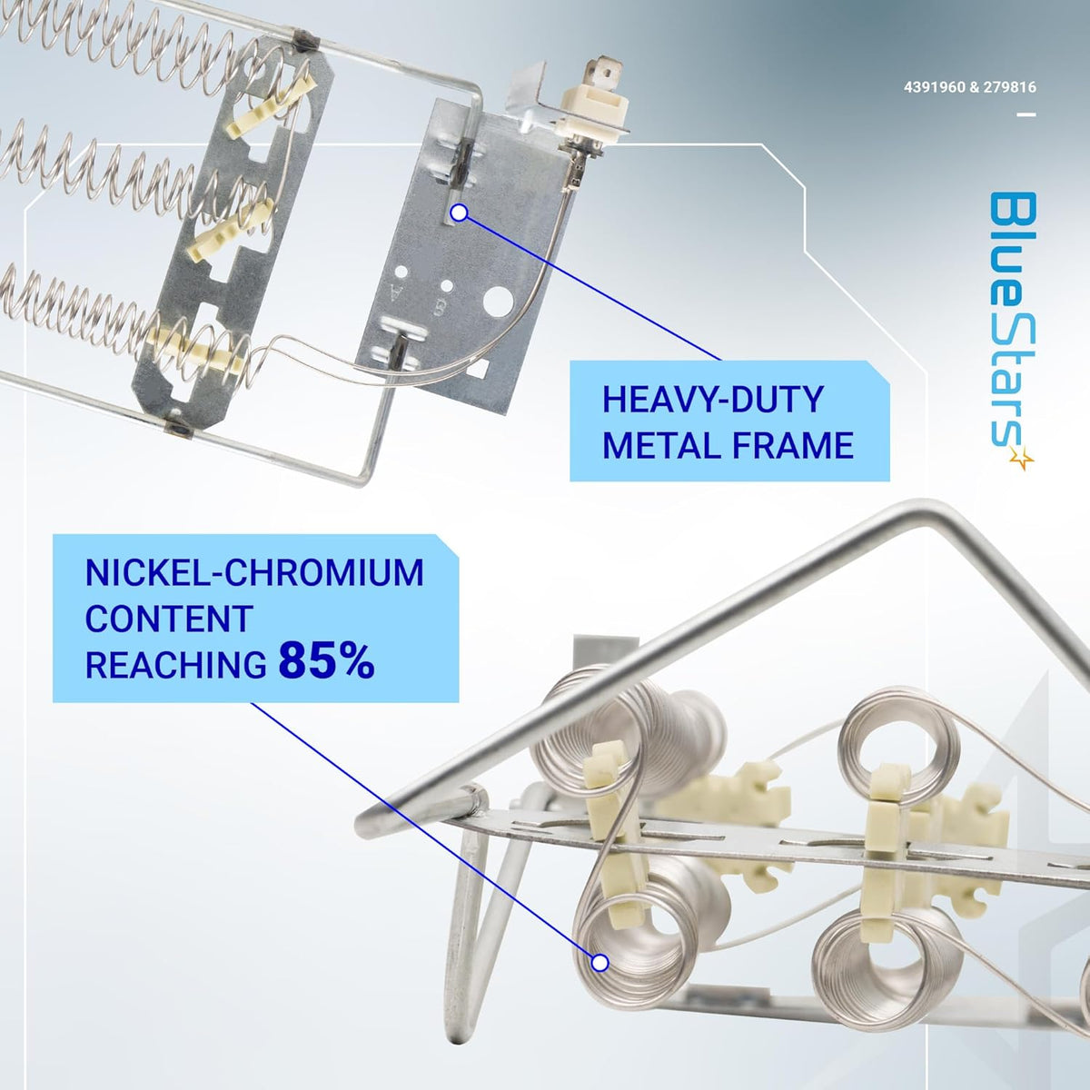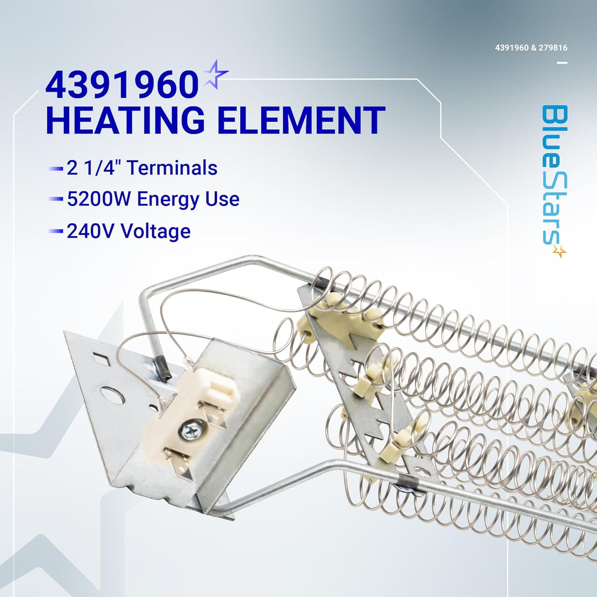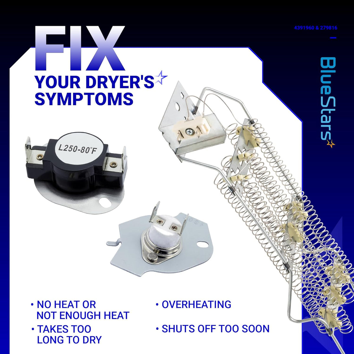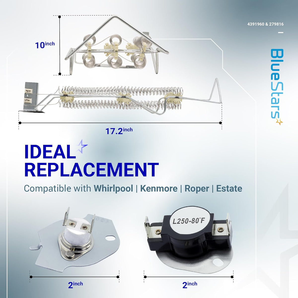 BlueStars 4391960 & 279816 Dryer Heating Element With Dryer Thermal Cut-Off Kit replaces part numbers: 279218, 660965;2651, 279816, 3977393, etc.