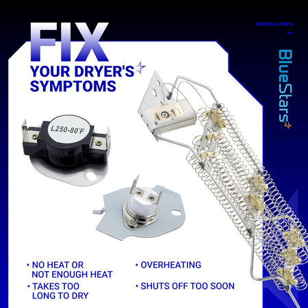 Enjoy the comfort that our dryer heating element with dryer thermal cut-off kit brings into your dryer - BlueStars provides DIY solutions to help you deal with any troubles