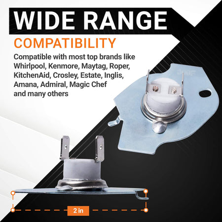 Each thermal fuse is manufactured from high-quality, heat-resistant materials and rigorously tested to meet or exceed OEM standards. Designed to fail safely when temperatures rise beyond normal limits, this fuse provides dependable protection for your dryer’s heating system.