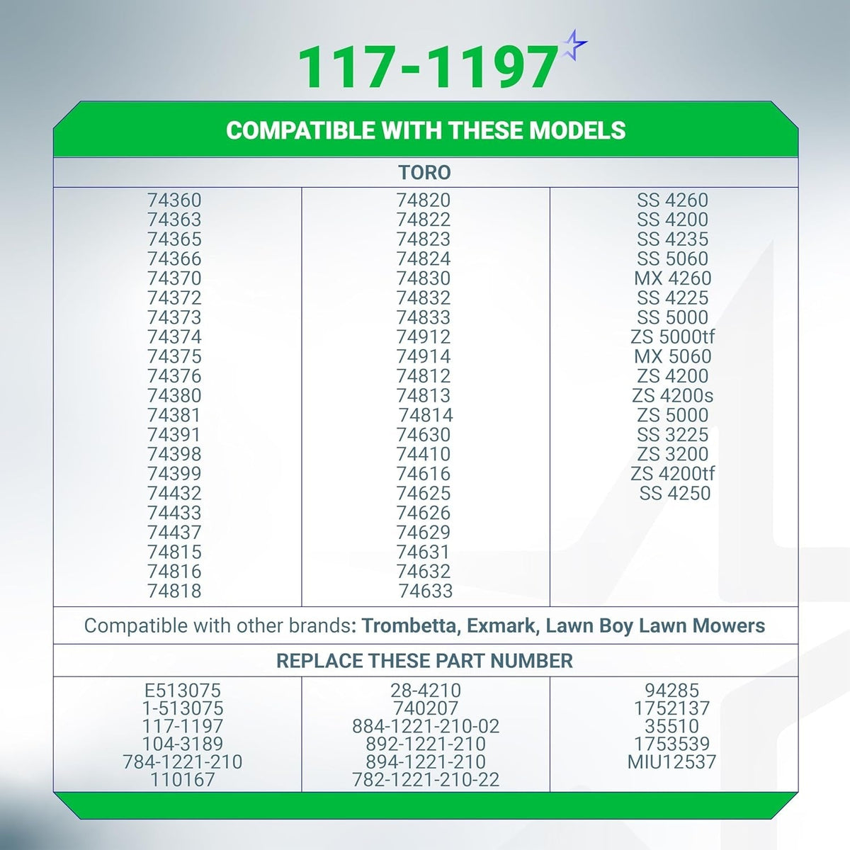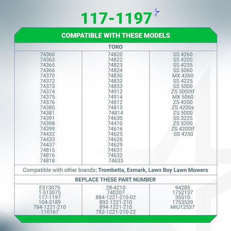 - Fits various models from brands including Toro, Exmark, and Lawn Boy.