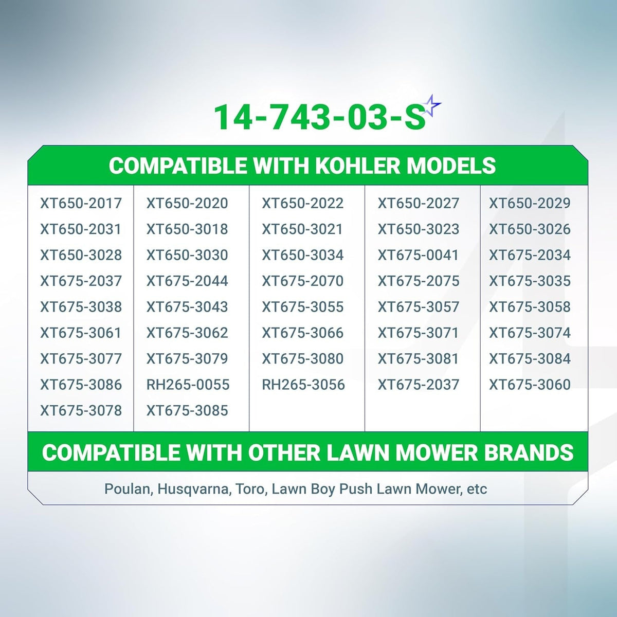 - Engine Models: Fits specific Kohler XT650 and XT675 series engines