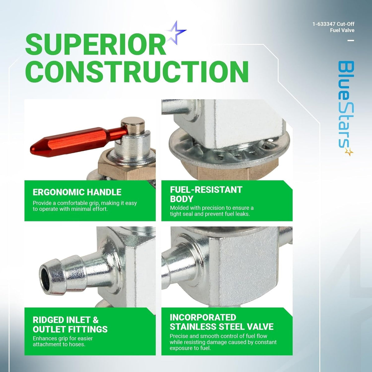 - Designed for zero-turn mowers and other equipment with a dual-tank fuel system.