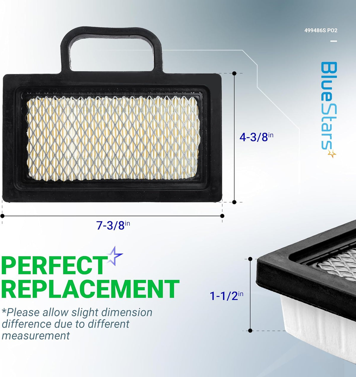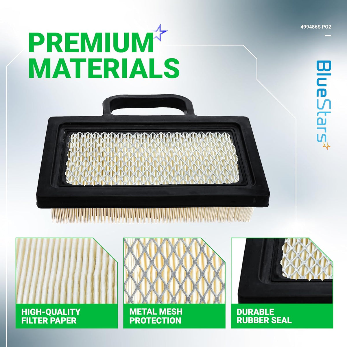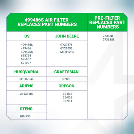 - Air Filter Replaces: Briggs & Stratton 499486, 499486S, 698754, 499476S, 691007, 695667, 5063, 5069