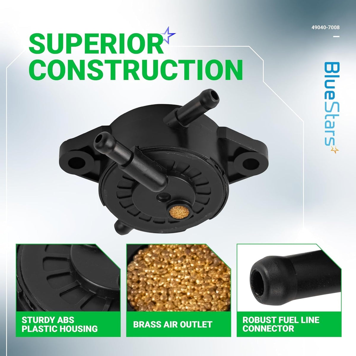 - Features three ports for fuel inlet, fuel outlet, and vacuum pulse line