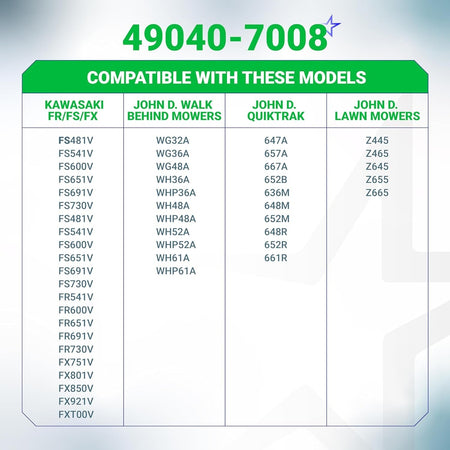 - Kawasaki FS Series Engines: FS481V, FS541V, FS600V, FS651V, FS691V, FS730V