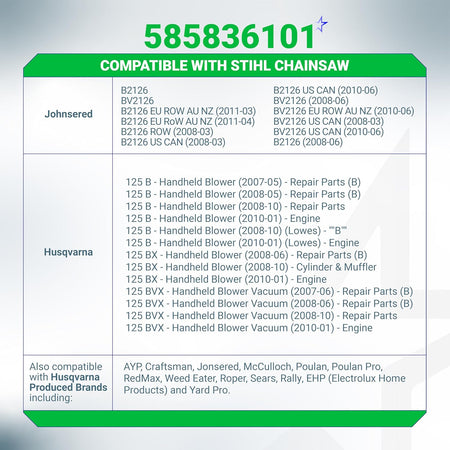 - Also fits select Homelite and Ryobi models that use the cross-referenced part numbers.